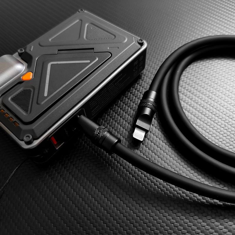 洗練されたオールブラックのデザインが特徴のブラックサムライエディションケーブルは、スタイリッシュで機能的です。急速充電機能と高性能な効率性を備え、デバイスを常に充電し、いつでも使える状態に保ちます。