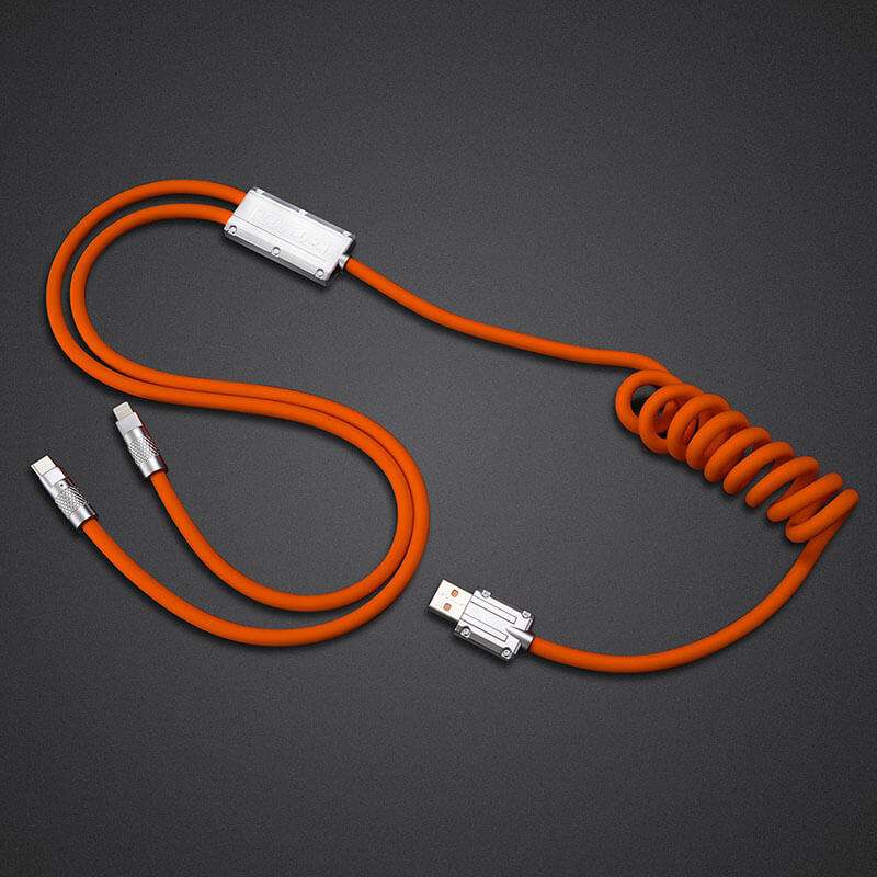 Chubby Plus 、2 in 1 の巻き取り式急速充電ケーブルをご紹介します。iPhoneとAndroidデバイスを同時に充電できます!