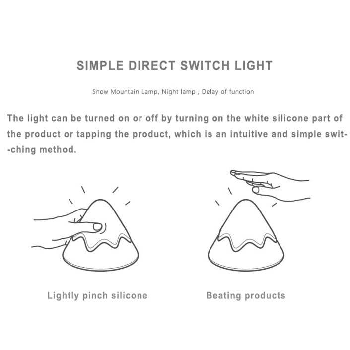 空気感知スイッチ設計により、愛らしい雪山をそっとつまんだり握ったりすることで、ランプをオン/オフすることができます。