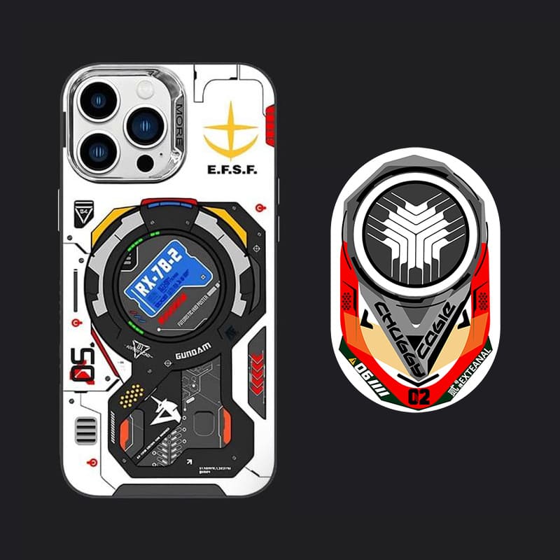 目を引く機械戦士のデザインを特徴とする、Magsafe 対応の磁気電話ケースとスタンド セットの洗練された未来的な美学を満喫してください。