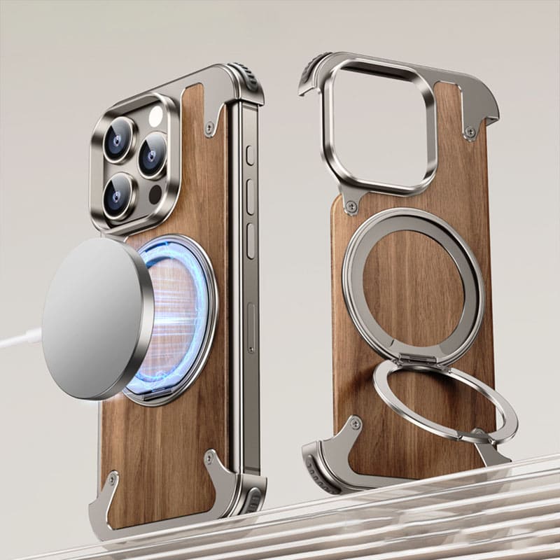 エレガントな外観にもかかわらず、このケースは日常的な摩耗や損傷からしっかりと保護します。頑丈な木製構造と補強されたコーナーが、落下や衝撃からスマートフォンを守ります。